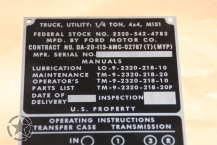 Data Plate Ford M151 ,2320-542-4783